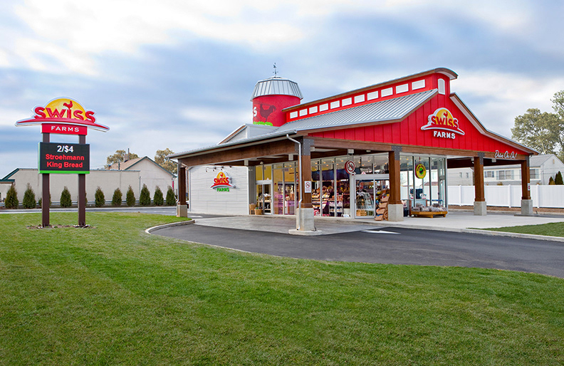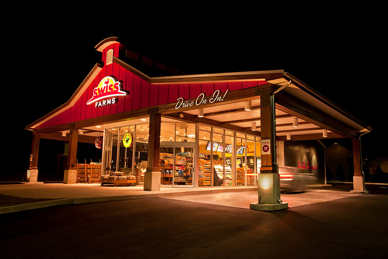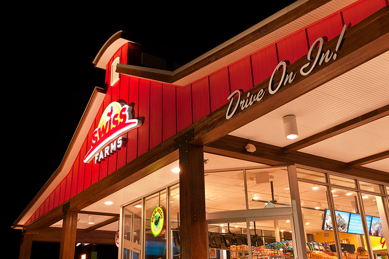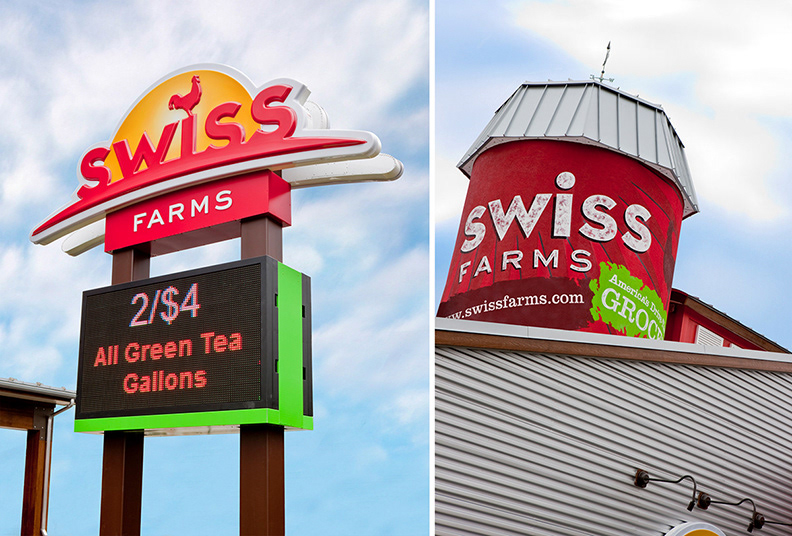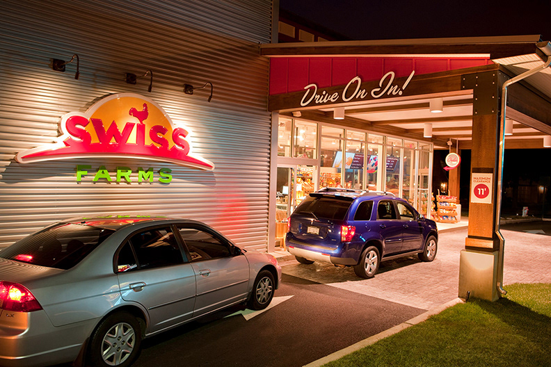 Once a leader as a drive-thru convenience store, Swiss Farms wanted to rethink their store experience and product offering to become a drive-thru grocery store providing market essentials to customers on the go. We updated the brand identity and rebranded the exterior architecture to reflect a fresh market feel, all while displaying product easily for a seamless drive-thru experience.